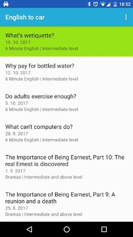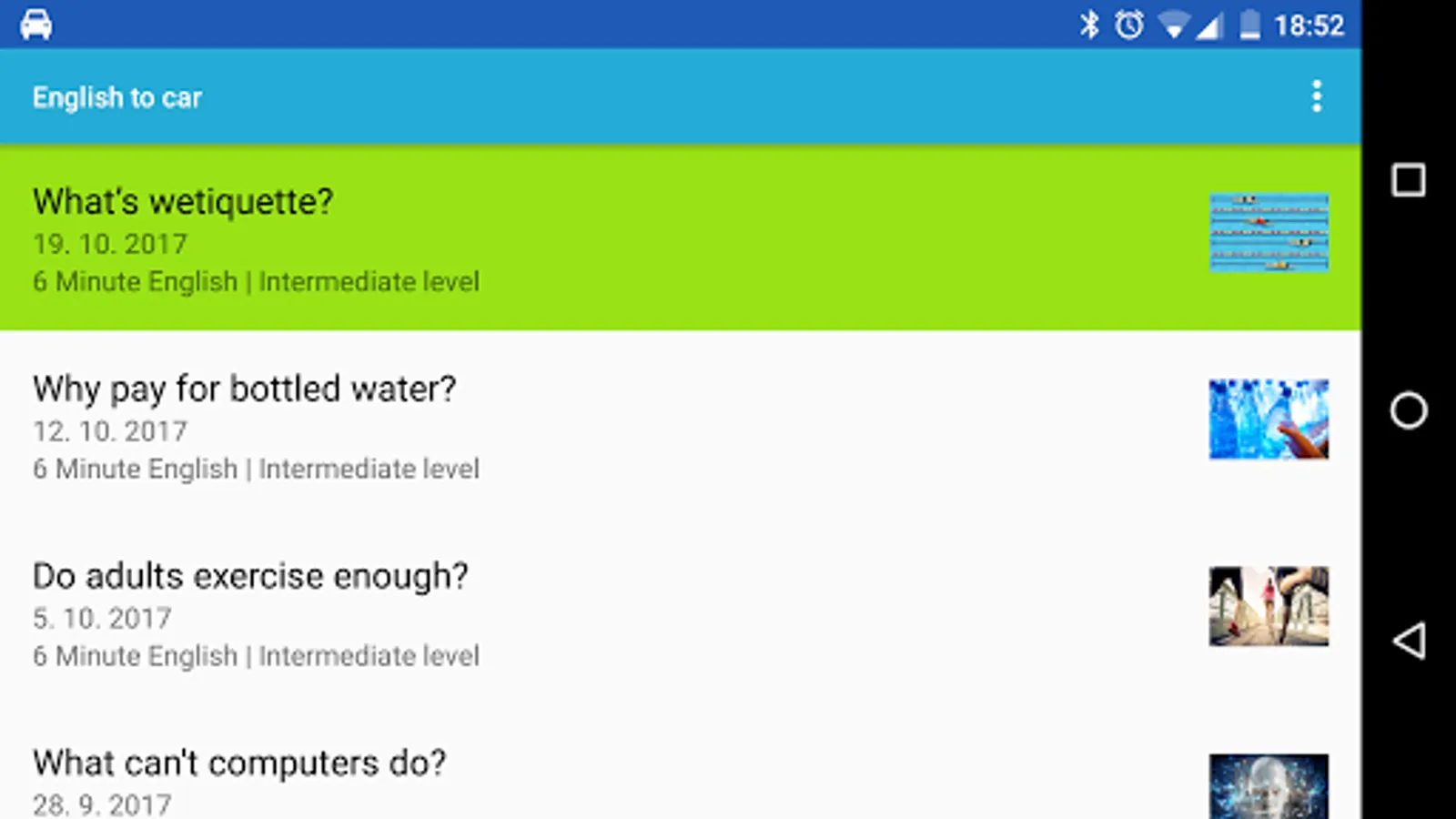 English car. After the arrival of the car (after the merger with the Bluetooth radio in your car) will automatically play the latest English Articles