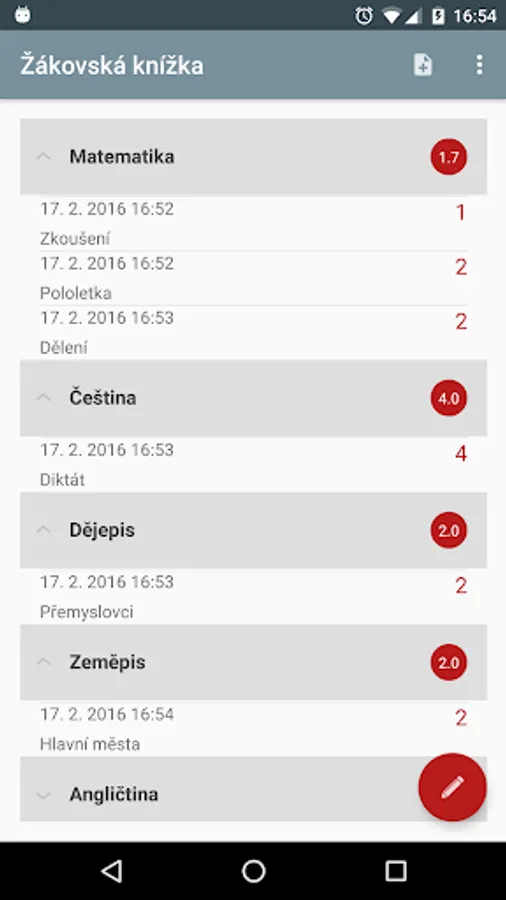 For all students who receive the mark and want to know what are the average of the subjects we have created a simple application. In the application you create objects to which you are writing signs. The application automatically calculates averages in each subject