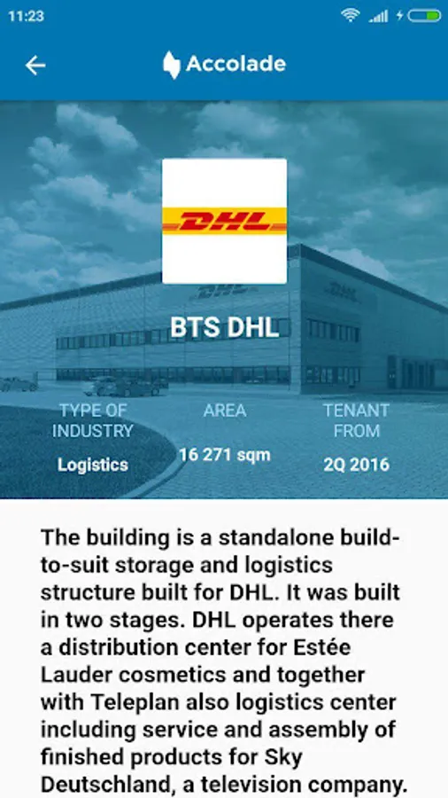 The application offers up-to-date details of the Accolade industrial parks and individual buildings in those parks, including their tenants.