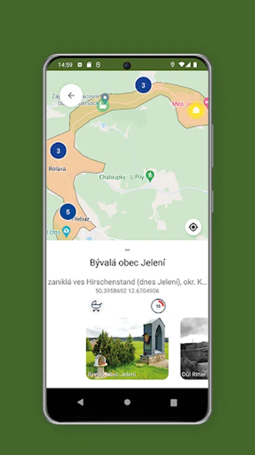 You can choose places to visit either according to the location or according to a topic close to you. The individual archeological monuments are grouped into walks, which you will see on the introductory map screen. You can also choose walks in the menu below the map. After clicking on the selected walk, you will see additional information about the walk and its individual points of interest, for which you can read more information and view the multimedia gallery. It is also possible to start navigation to individual points.