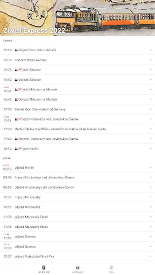 All the up-to-date information you need to know about VlakFest events - when your train is coming, who will be playing, where and when, what to eat and what to do in case of an emergency.