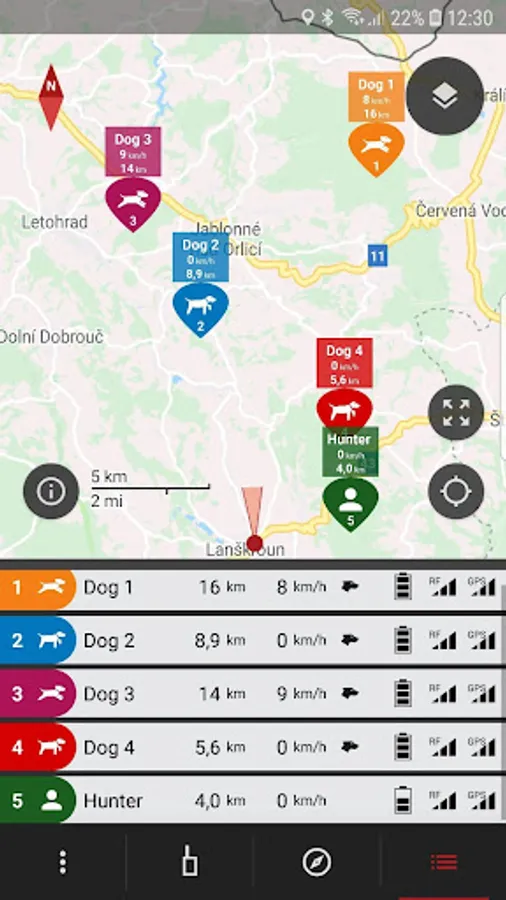 The Dogtrace GPS application is designed for use with DOG GPS X30 by Dogtrace. The device is used for locating dogs up to a distance of 20 km. From your DOG GPS X30 receiver, you can transfer your dog information to your phone's application via Bluetooth, view it on maps, and record its and your track. You can pair the receivers of other dog owners to your receiver and also display them on the map. The DOG GPS X30T / X30TB version allows the application to control the built-in electronic training collar.