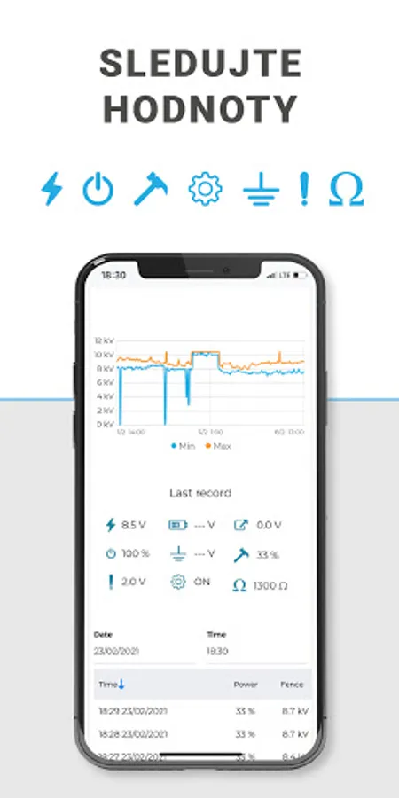 Uživatel má přehledný přístup ke všem hlavním informacím o ohradě a má možnost si pro každý generátor a monitor nastavit alarm, kterým bude upozorněn na překročení nastavených limitů.