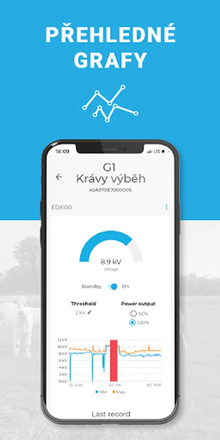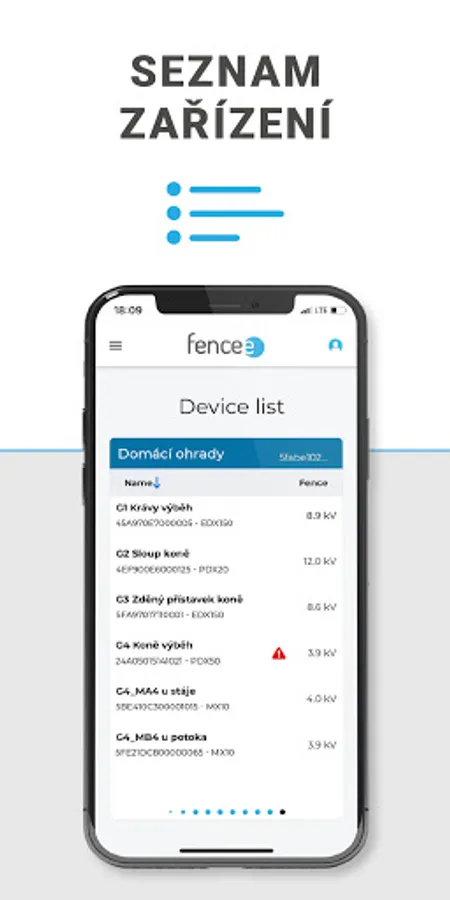 Aplikace přijímá z monitoru informace o stavu napětí ohrady.