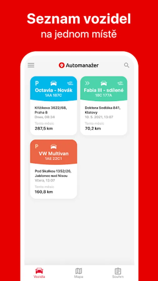 You can add new vehicles, the right to visibility to other users and manage / edit individual rides via the web application on the automanazer.vodafone.cz website. If you already have a vehicle registered here, then you can log in to this mobile application using the same login details and monitor information about your vehicles here.