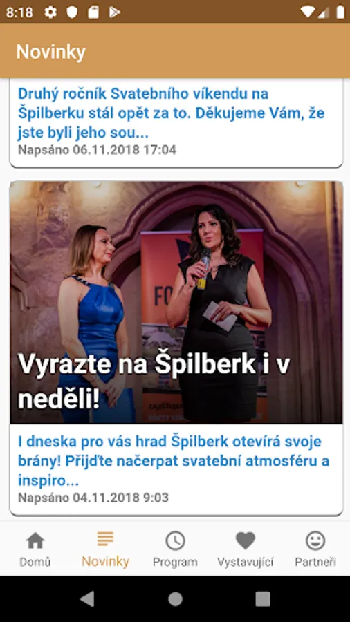 - News - a completely new module, thanks to which you can get up-to-date information about the wedding Špilberk