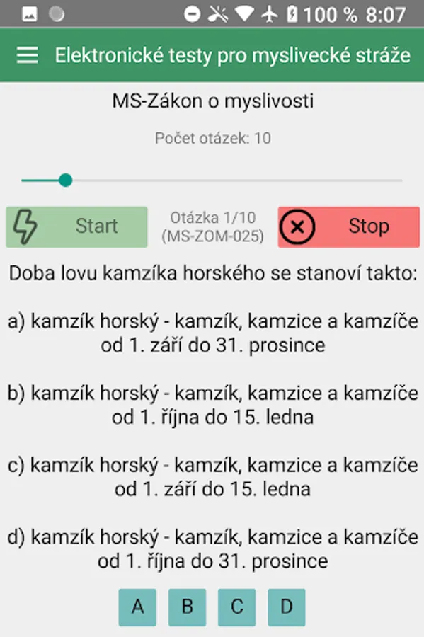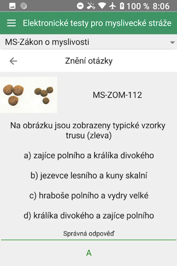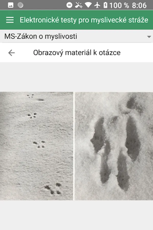 The application is an excellent tool for preparing individuals for the Game Guard, Forest Guard, Fishery Guard and Nature Guard exam, as it contains a complete set of test questions (including regular updates) and allows you to be tested at any time, from any subject area and number of questions - all with automatic evaluation and the ability to monitor the level of knowledge of a person or persons. The database of test questions includes approximately 300 questions for the hunting guard, 120 questions for the forest guard, 150 for the fishing guard and 50 for the nature guard, all according to the applicable legislation.