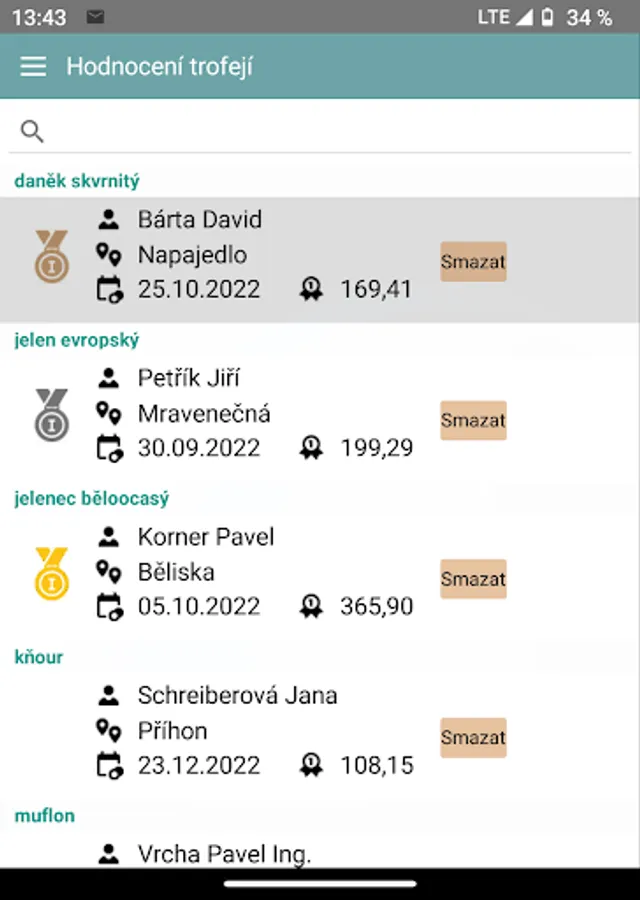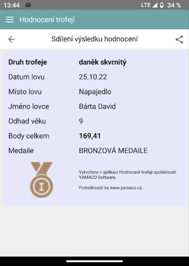 Conceptually and technically, it is based on our national information system, Evidence of Hunting, which confirmed its quality in the official evaluation of approximately 4,000 trophies for the international Natura Viva trophy exhibitions in Lysá nad Labem in 2009, 2015 and 2021.