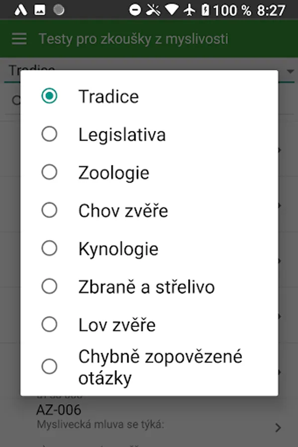 This is software for applicants for hunting exams in order to subsequently obtain a hunting license. The application allows the user to be repeatedly tested on selected test subjects, offering a selected number of questions for each subject and randomly selecting questions from a large database.