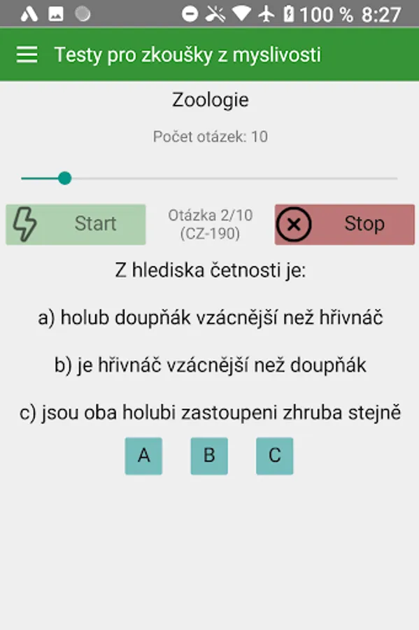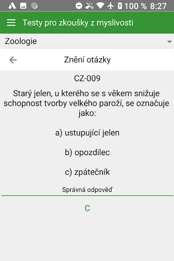 The test questions were drawn up and are continuously updated by leading Czech experts in the field of hunting (Vysoká škola zimědská Prague, Českomoravská myslivecká jednota, Vojenské lesy a statky s.p.).