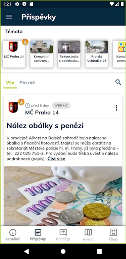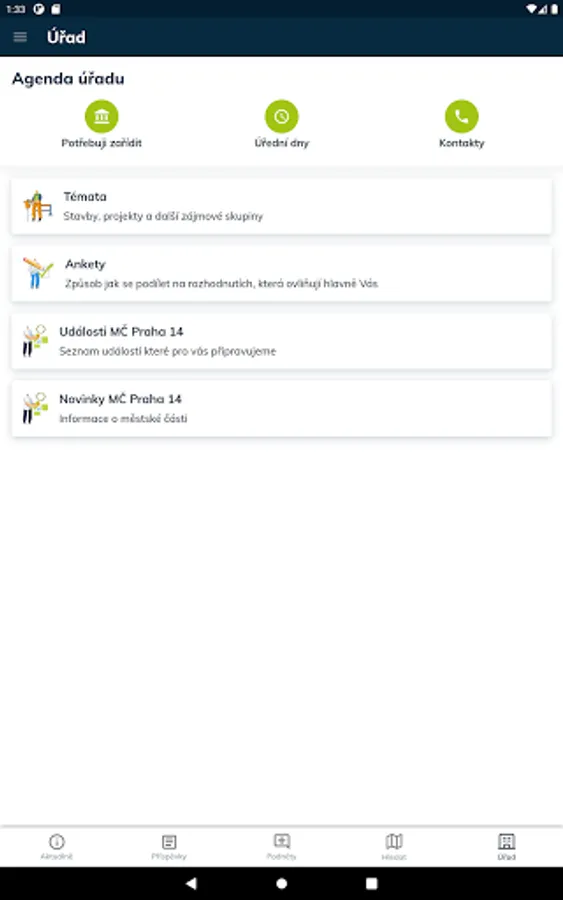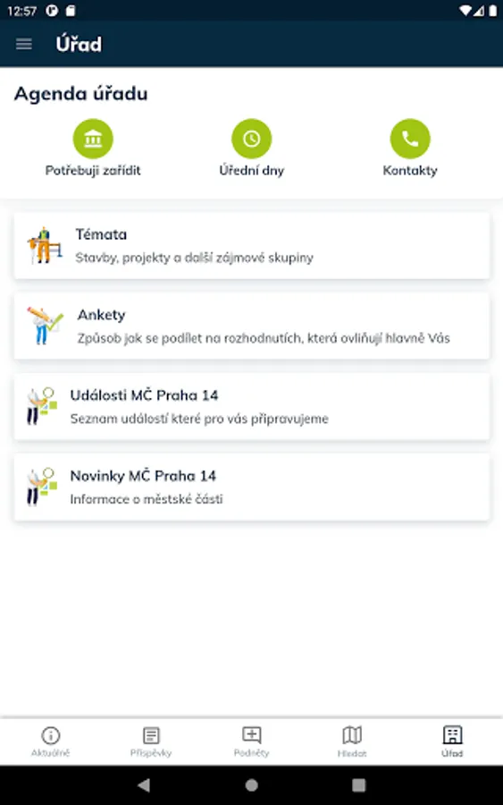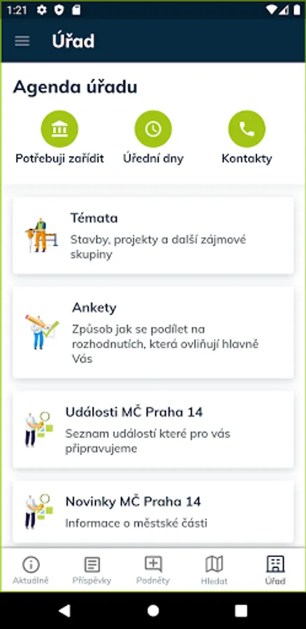 Applications for residents of the Prague 14 district. Current information, communication with the office, power outages, planned events, community events and much more - all in one place.