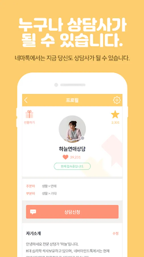 Counselors Help counselors, collect likes, and become popular counselors.