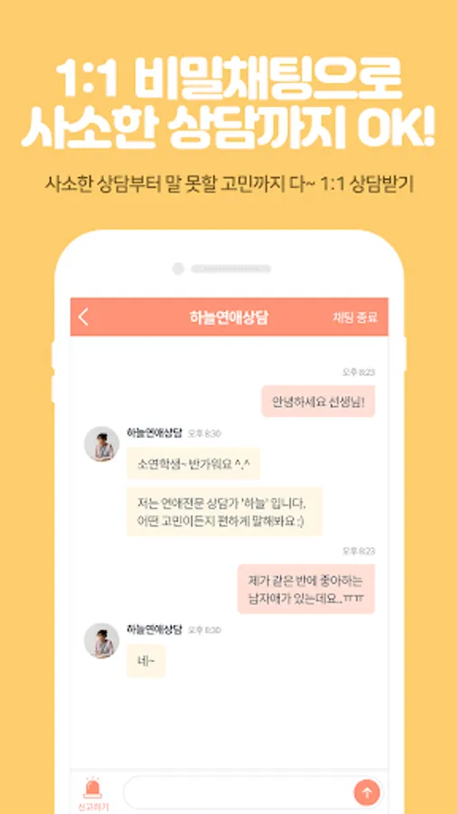 Counselors Please talk about small things through one-on-one secret chat.