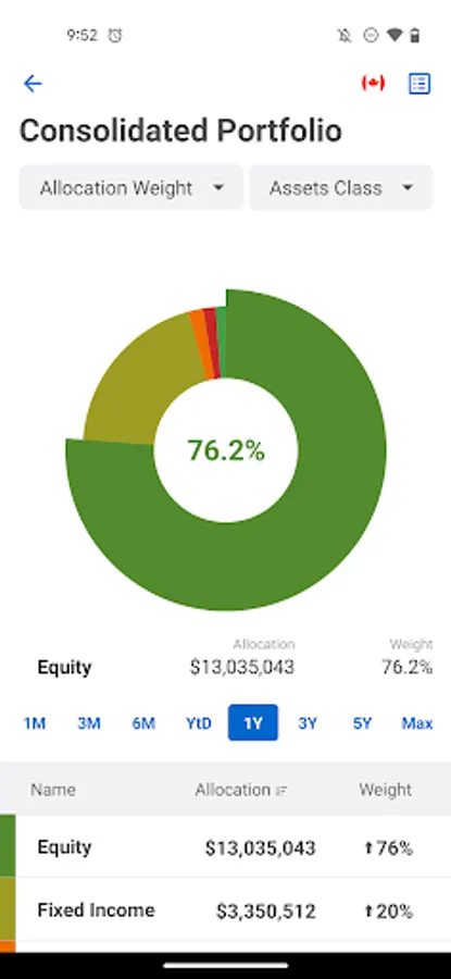 • Portfolio allocation and performance segmented by sectors and asset class