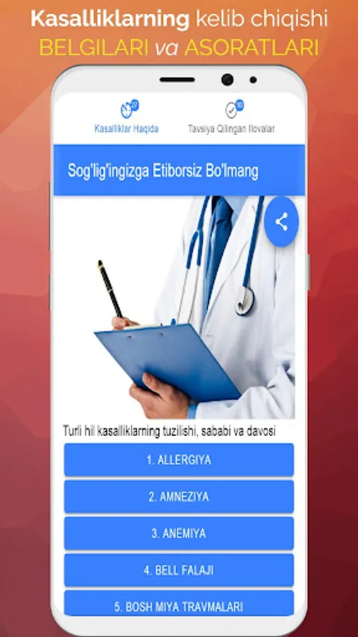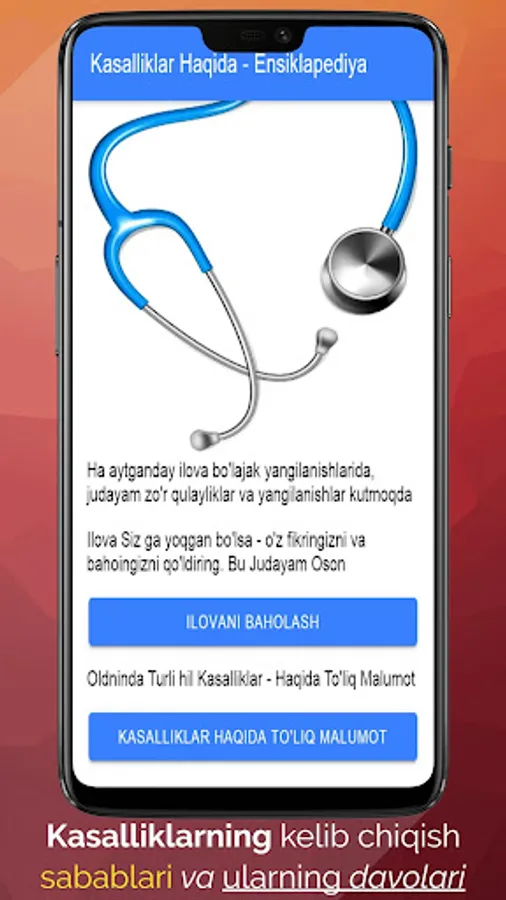 Ilova Har Yangilanganda Kasalliklar To'plami qo'shiladi. Ilova ni Yangilab Turishni Unutmang. Har Doim Sog' Salomat Bo'ling