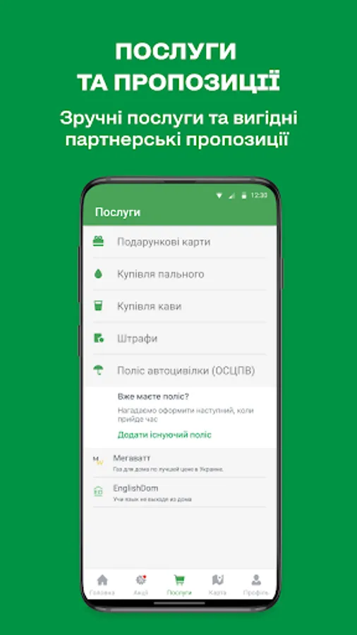 • Total online. The entire WOG online store is available directly in the app, along with gift cards. And in a year - more!