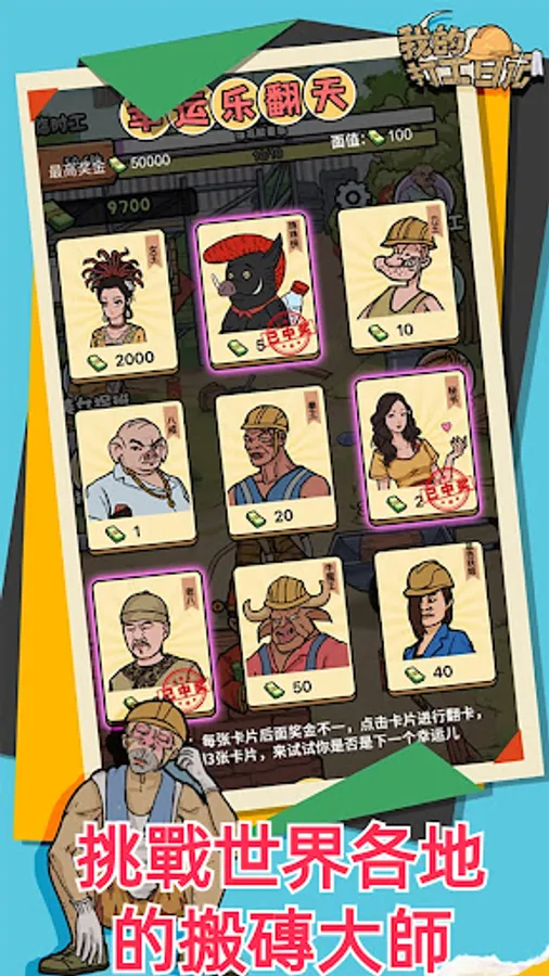 As a top local bricklayer, you now have a huge challenge. Master bricklayers from around the world have heard of your exploits and want to challenge you for glory. You must quickly strengthen yourself to meet the crisis, knowing that in the bricklaying business, there can only be one winner!
