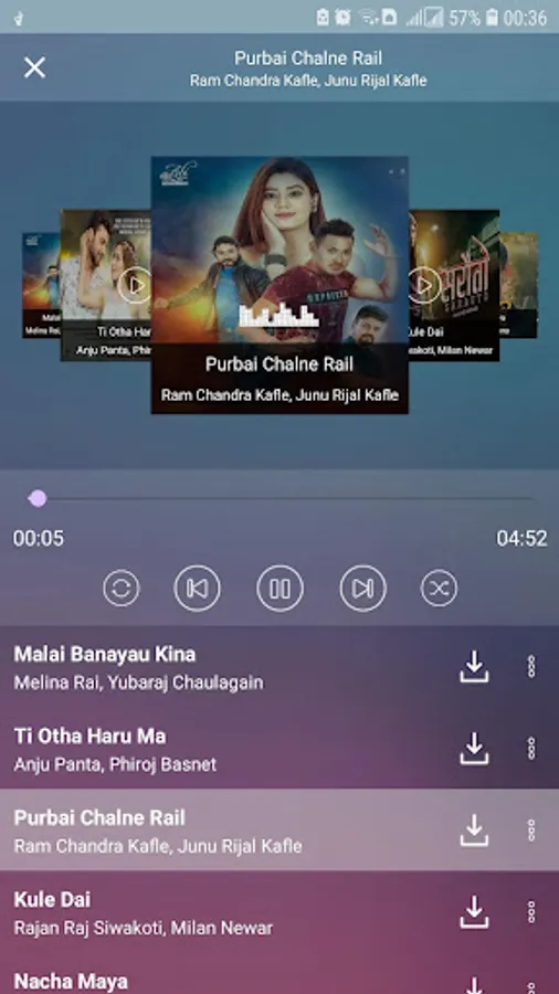 You can listen songs of Ramkrishna Dhakal,Nabin K.Bhattarai,Anil singh,girish khatiwada,anju panta,Melina rai, nima rumba, Kali prasad baskota,Rajan Raj Siwakoti,Rohit John Chhetri,Bands like Nepathya,1974 AD,Kutumba,The axe. Lok Dohori vetran like pashupati sharma, Pushkal sharma, Muna thapa magar, ramji khad, Kulendra BC. Modern star like Pramod kharel, Shiva pariyar. Indira joshi ,aastha raut and many more.