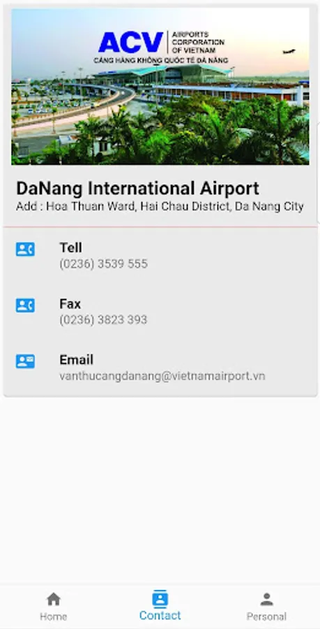 The app provides flight information to passengers at the Domestic terminal - Da Nang International Airport such as announcing flight times, changing flight schedules, status of departing and arriving flights.