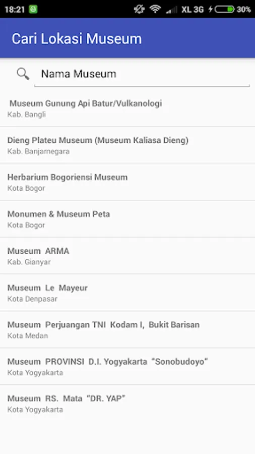 This application serves as a bookmark media for the location of museums in Indonesia. It has a search feature and a map pointer that is accurate and complete as well as detailed information related to the museum