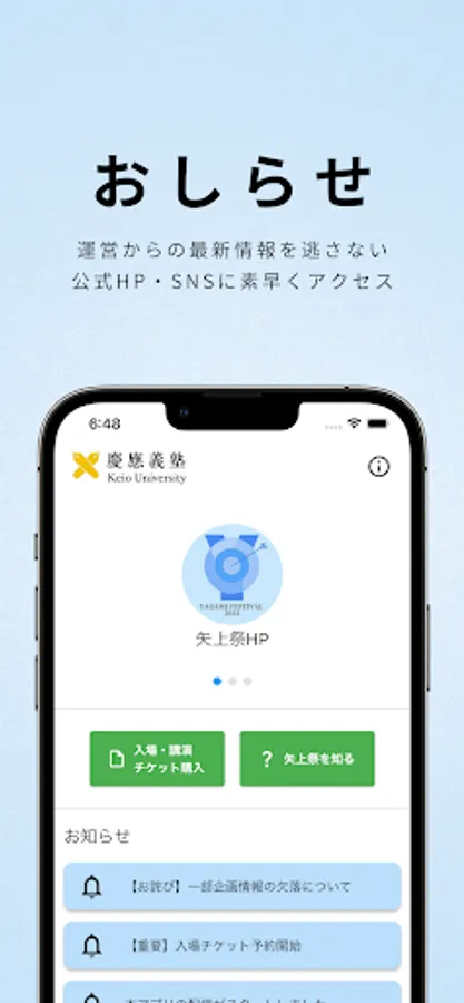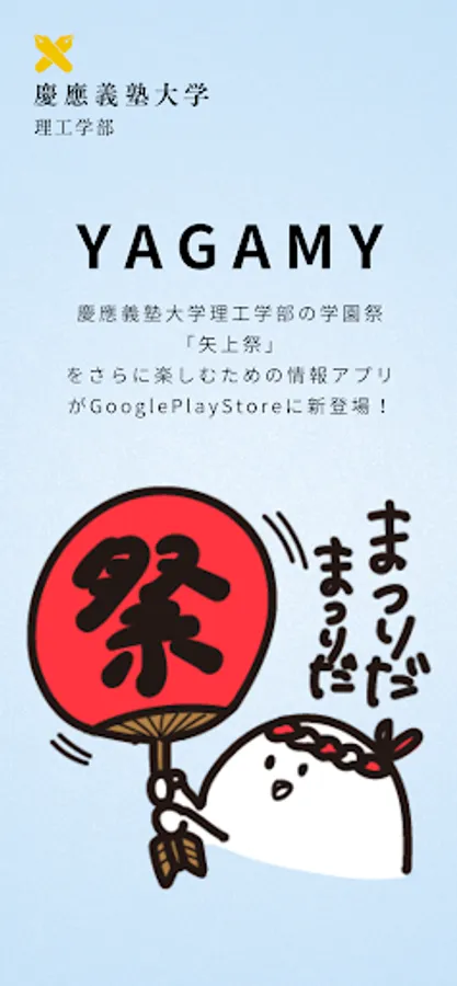 "Yagami Festival Official App "Yagamy"" is the official information app for Keio's school festival "Yagami Festival".