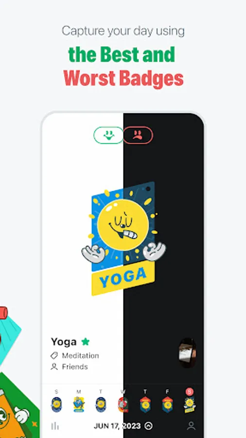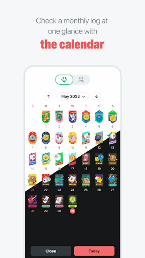 Through the adorable and lovely badges each day, record your most amazing achievements and the things you find most regrettable. The more you record, the more you can feel satisfaction in which areas, what kind of life you are living, and what values you consider important!