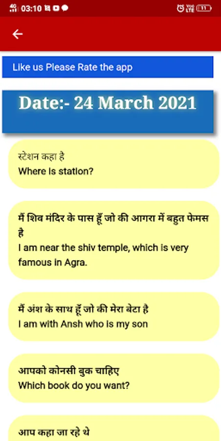 I hope you will definitely like our efforts we will try to update the app with more and more daily use words and sentences regularly so that you can learn new words everyday.