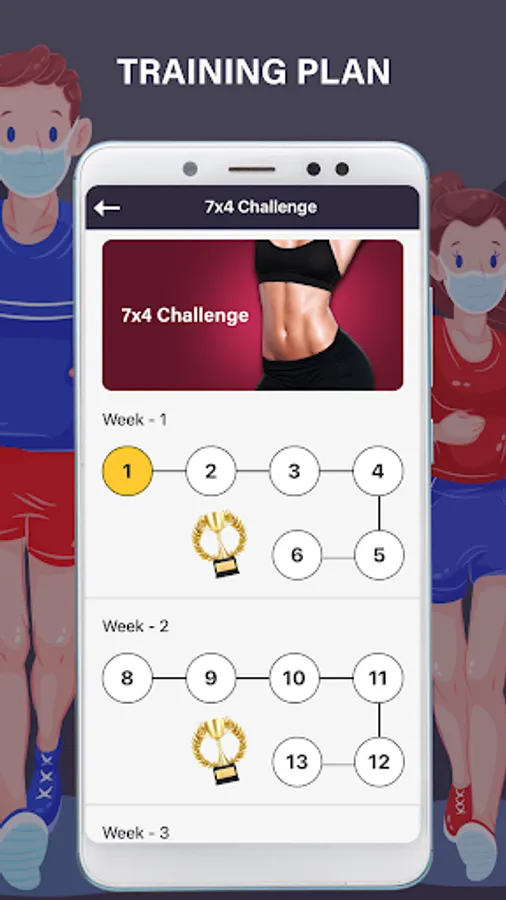 - 7x4 Challenge: If you want full body challenge in one month, you can go with this category. This category contains various types of work outs. Each and every workout is represented in Image.