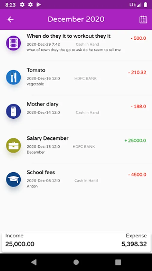 Manage expenses automatically based on SMS alerts received for each transaction from banks, credit cards and business. Expense tracker also allows manual entries.