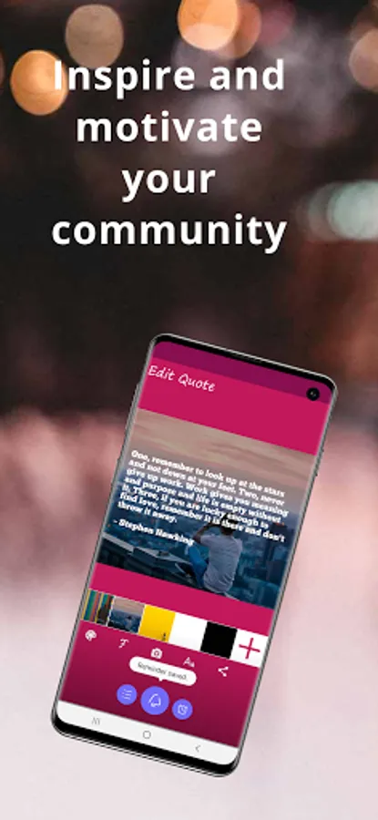 The app’s purpose is to help motivate and inspire you to your very best through these inspiring quotes. We have also been able to share some of the world's best motivational quotes that were hand-selected and grouped together in categories to fit your wants.