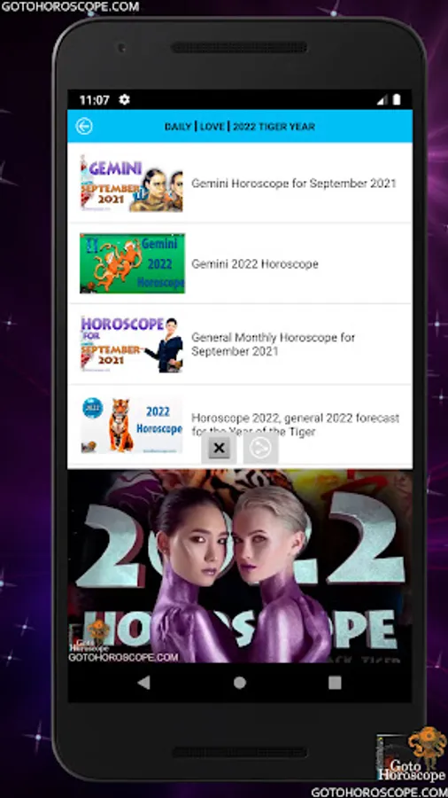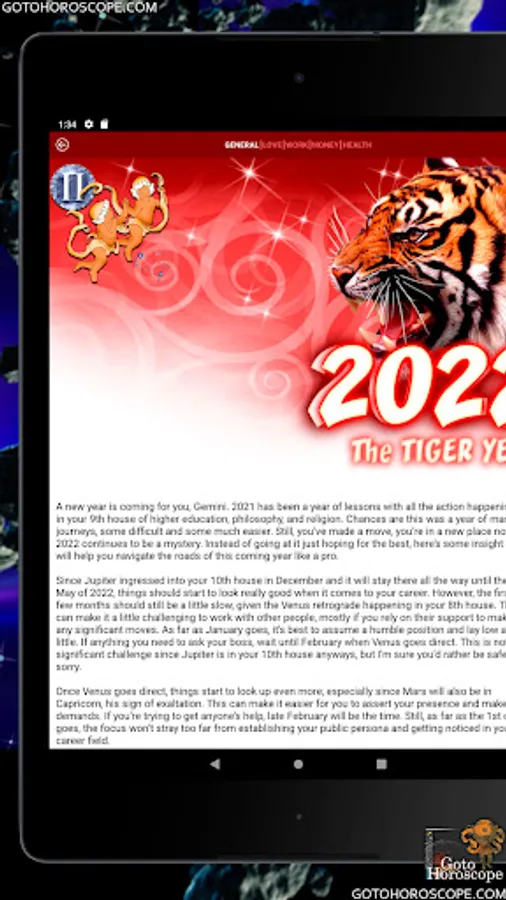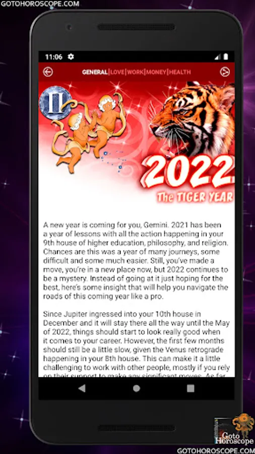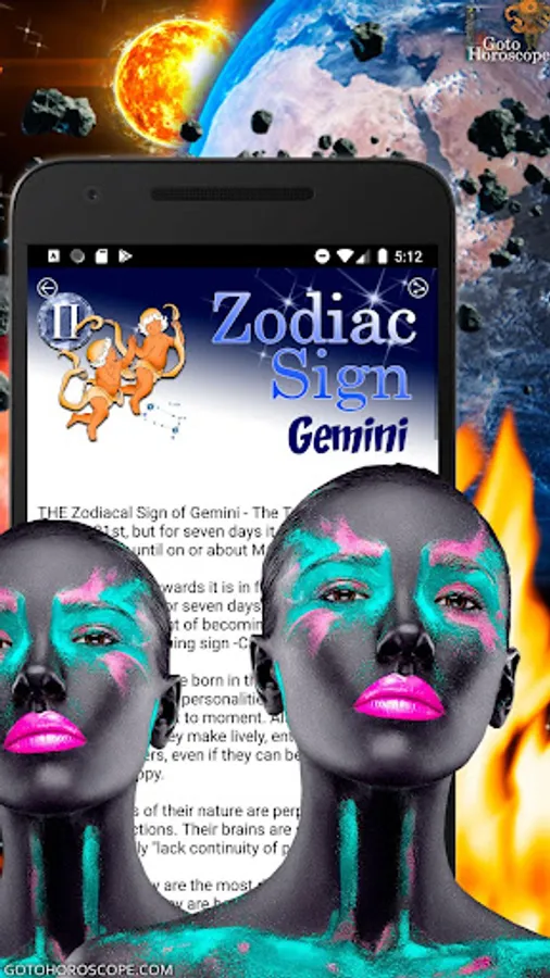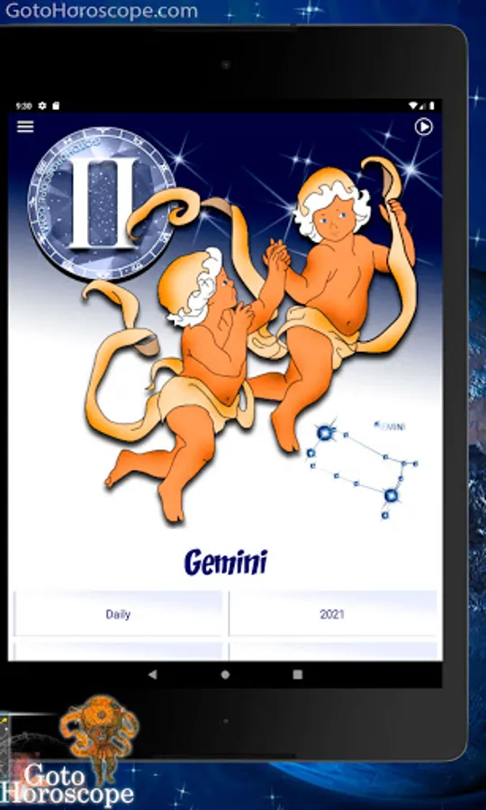 Gemini Horoscope is an easy & cozy horoscope for everyday use. Astrological forecasts and horoscopes for Gemini on Android apps free, developed with love for the Zodiac Sign Gemini by the GotoHoroscope.com