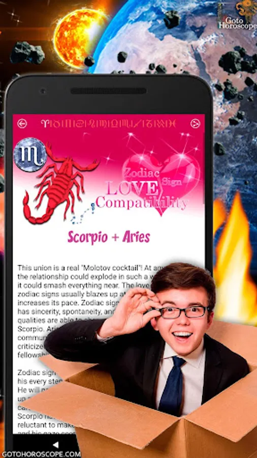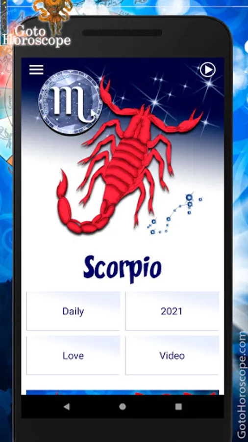 Scorpio Horoscope is an easy & cozy horoscope for everyday use. Astrological forecasts and horoscopes for Libra on Android apps free, developed with love for the Zodiac Sign Scorpio by the GotoHoroscope.com