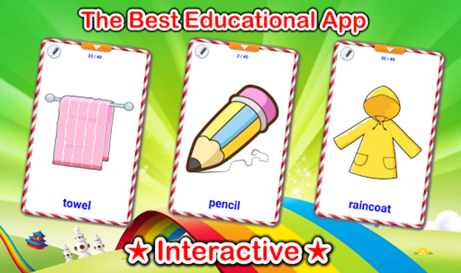 The app contains many fancy, interesting, funny cards that make you play and learn at the same time. Moreover, It improves the language learning, cognitive learning and listening ability.