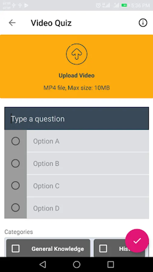 Diverse Quiz Categories: Explore an extensive collection of quizzes in categories like General Knowledge, History, Sports, Cinema, and more.