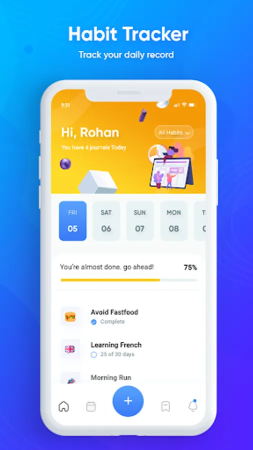 You can create your own challenges, smart habits tracking, personalized goals, accomplish your habits and track habits insights.