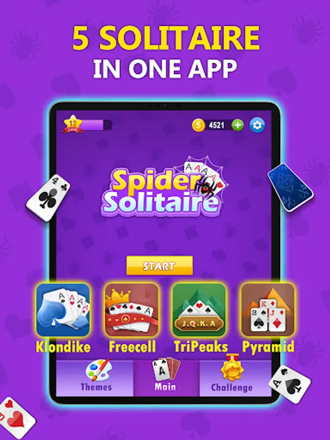 Three-in-One Card Fun: Not only Spider Solitaire, but we've also bundled in popular Solitaire variations - Klondike, Freecell, and Tripeak for endless card fun.