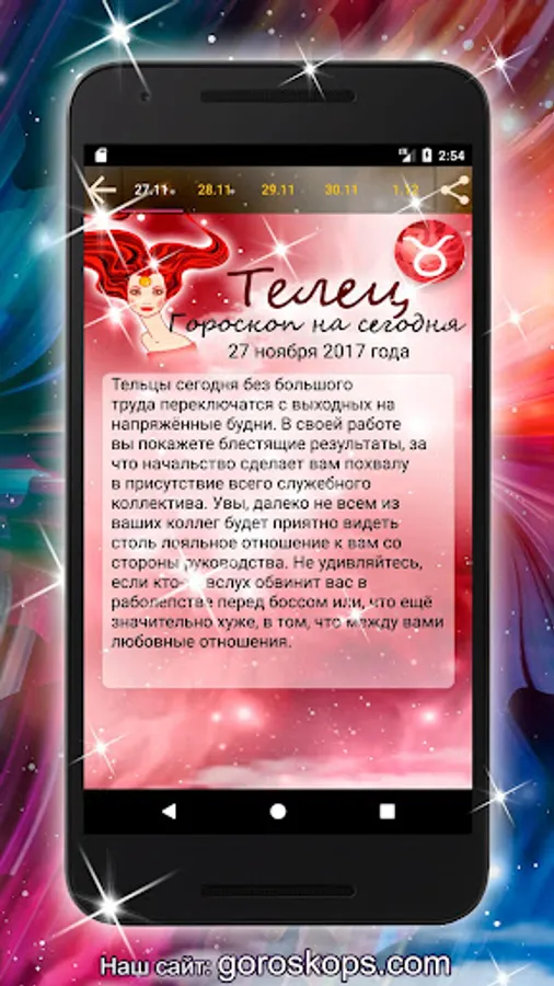 Who, no matter how you, subtly feeling and deeply thinking Taurus, are better able to appreciate the design of our application? We hope that you will find the horoscopes prepared by us a convenient addition to the textual information. All of the above will set the tone for your day, cheer you up and help you achieve maximum success!