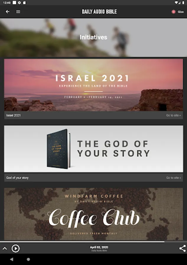 For more information about Daily Audio Bible, please visit dailyaudiobible.com.