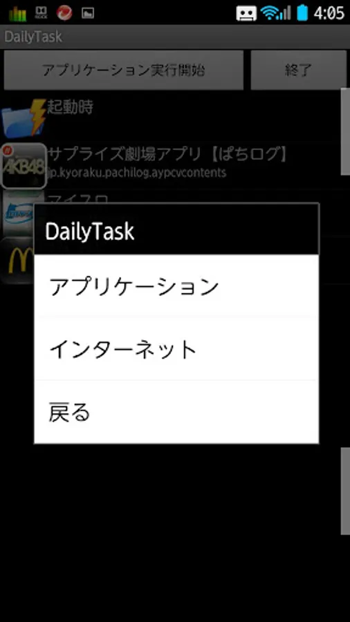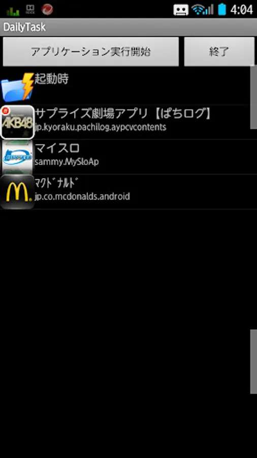 An application that was registered when you tap the "start application execution" to launch in order. Since it started immediately in order, the screen of the last application that was started will be displayed.