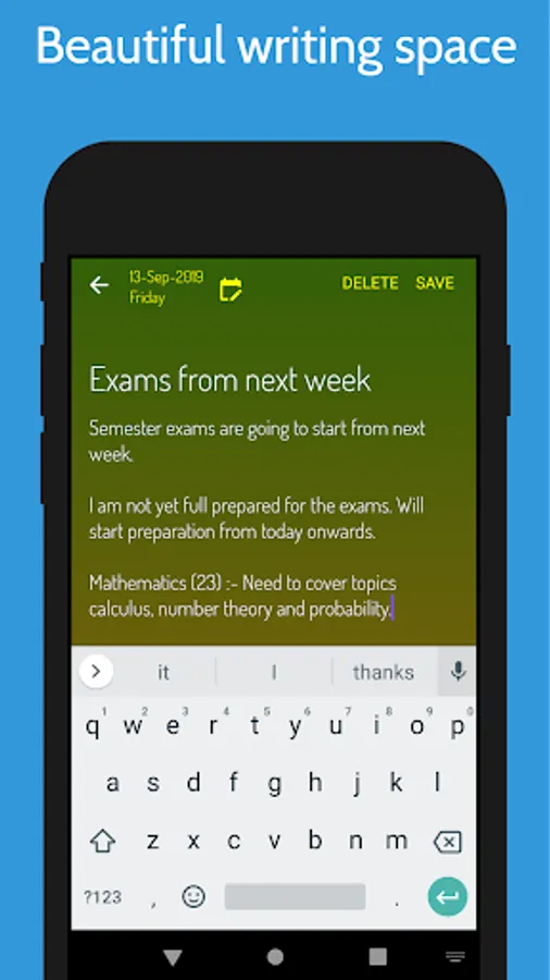 ๐ It has reminder option as well. Once you set a reminder you will be reminded every day to write diary.