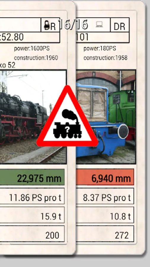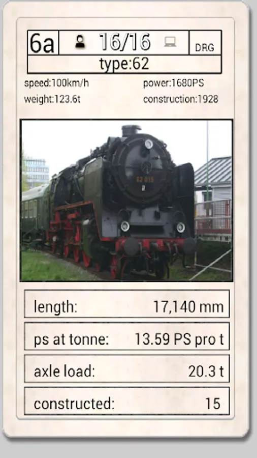 Locomotive-Quartet is a super-trump/top-trumps/mega-trump quartet card game. It consists of 32 cards, each has 4 attributes: