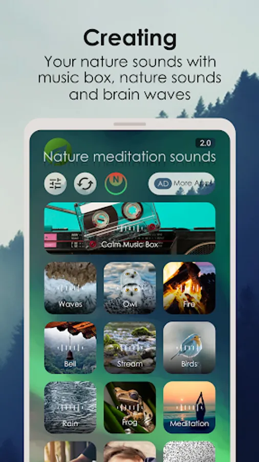 👍 You can play nature sounds and brain waves along with music or videos from other apps.