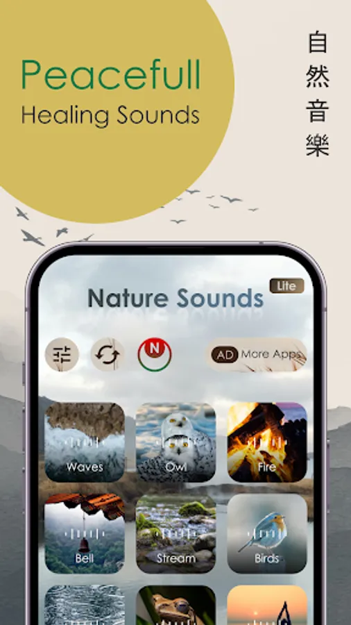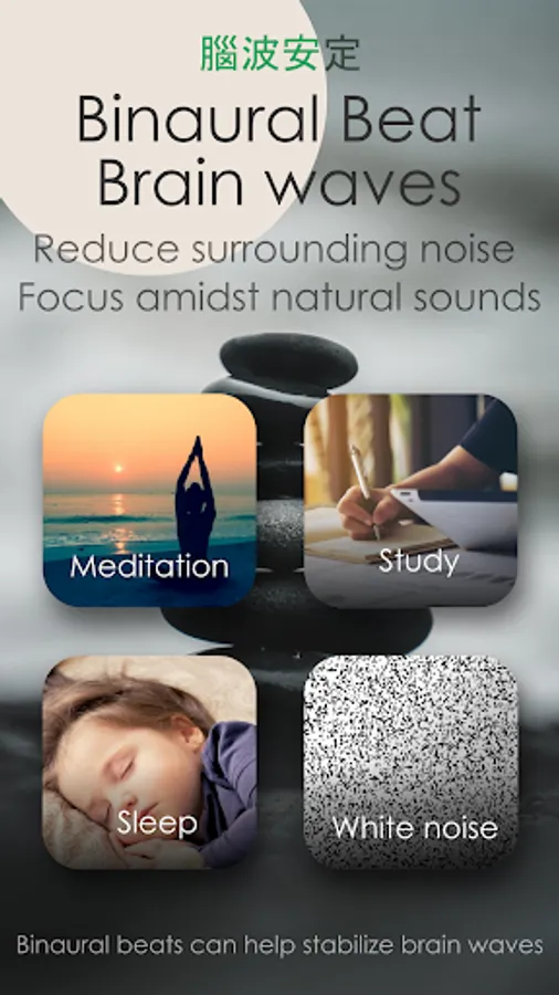 This app includes various sounds of nature that help you relax, such as the sound of waves from the deep blue sea, the sound of an owl on a quiet winter night under the full moon, the sound of logs burning white ash to rid yourself of daily worries, the sound of sacred bells in a mountain temple, the beautiful sound of birds that awaken forest spirits, the sound of rain that washes away sadness on a summer day, and the sound of a frog that soothes loneliness. It also provides binaural beat brainwave sounds for deep sleep, theta waves for deep meditation, alpha waves to help you focus and stabilize your brainwaves, and binaural beat noise to help you forget surrounding noises.