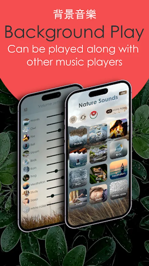 Through background playback, you can listen to all sounds even when you turn off the screen, and you can also play sounds simultaneously with other music apps. You can listen to your favorite music in nature or watch internet lectures with alpha waves to aid in learning.