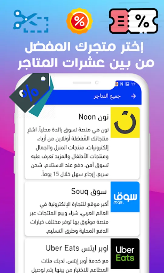 Saudi Coupons: The application contains discount coupons for Saudi stores and international stores that offer their products to Saudi Arabia, where the application shows you many Saudi discount coupons that operate in the Kingdom