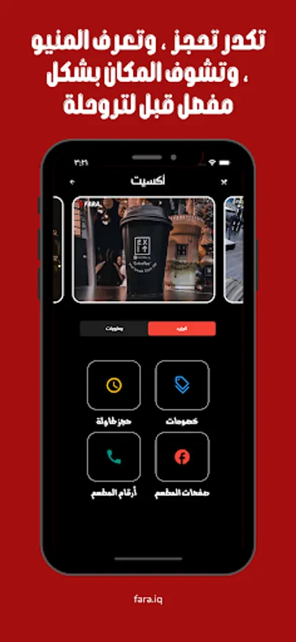 The largest Iraqi application that offers you exclusive discounts of up to 60% for card holders - Farrah - for discounts, we offer you a huge group of restaurants, cafes and shops with complete information about them such as the location, evaluation, numbers and more, knowing that the application is free for everyone and adding your products inside the application as well for free only the discount card If you want to take advantage of the discounts offered by all restaurants and products, you need to buy the card at symbolic prices