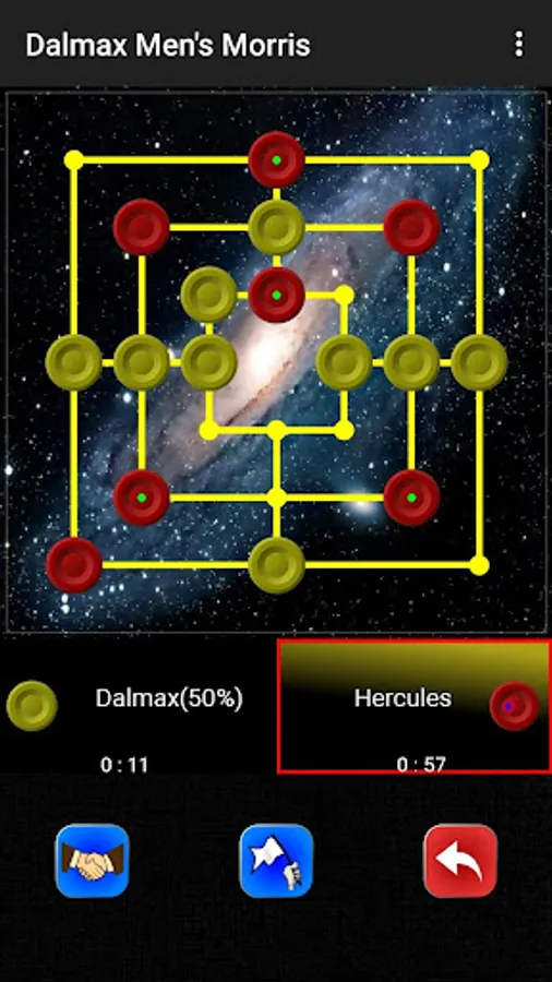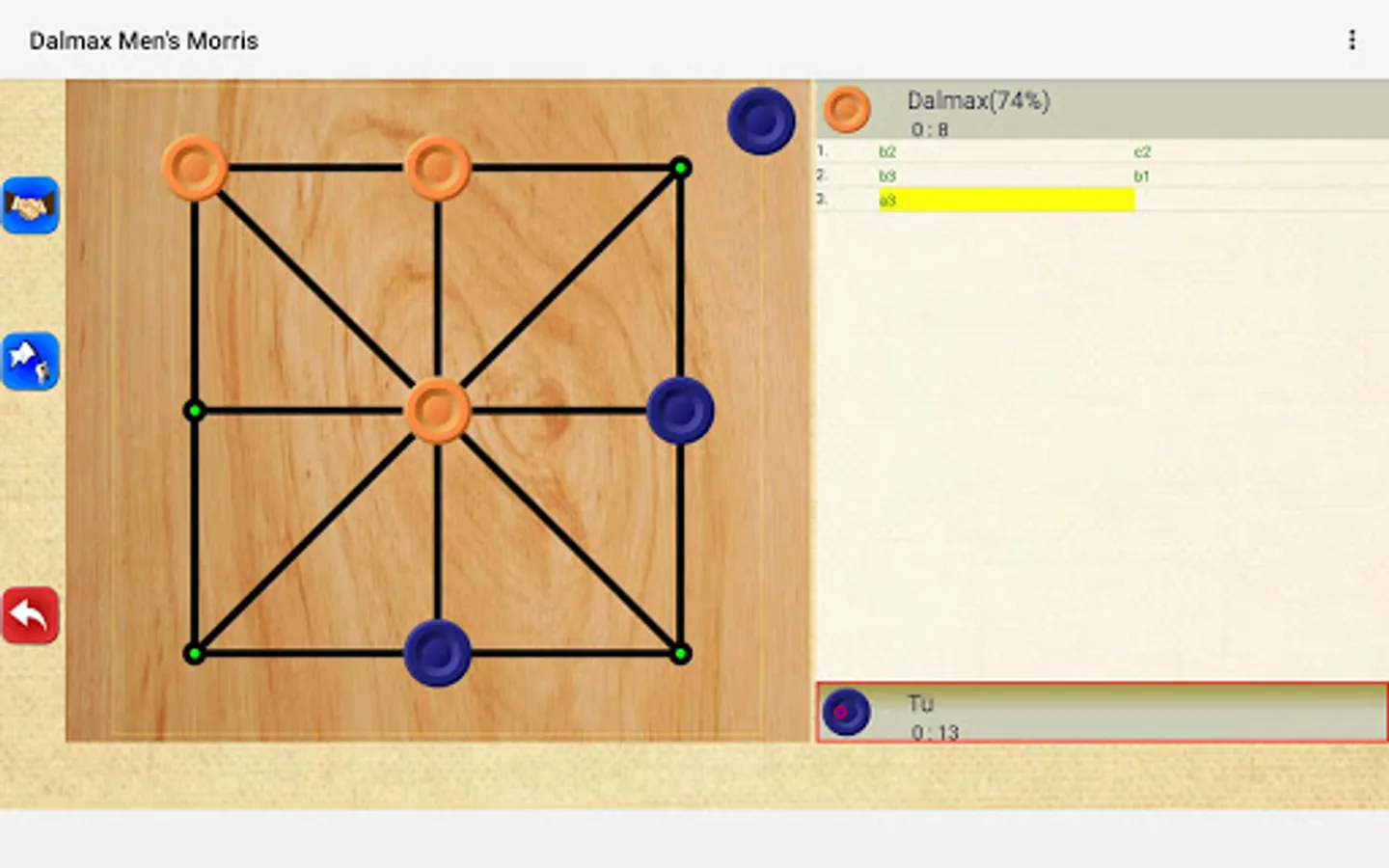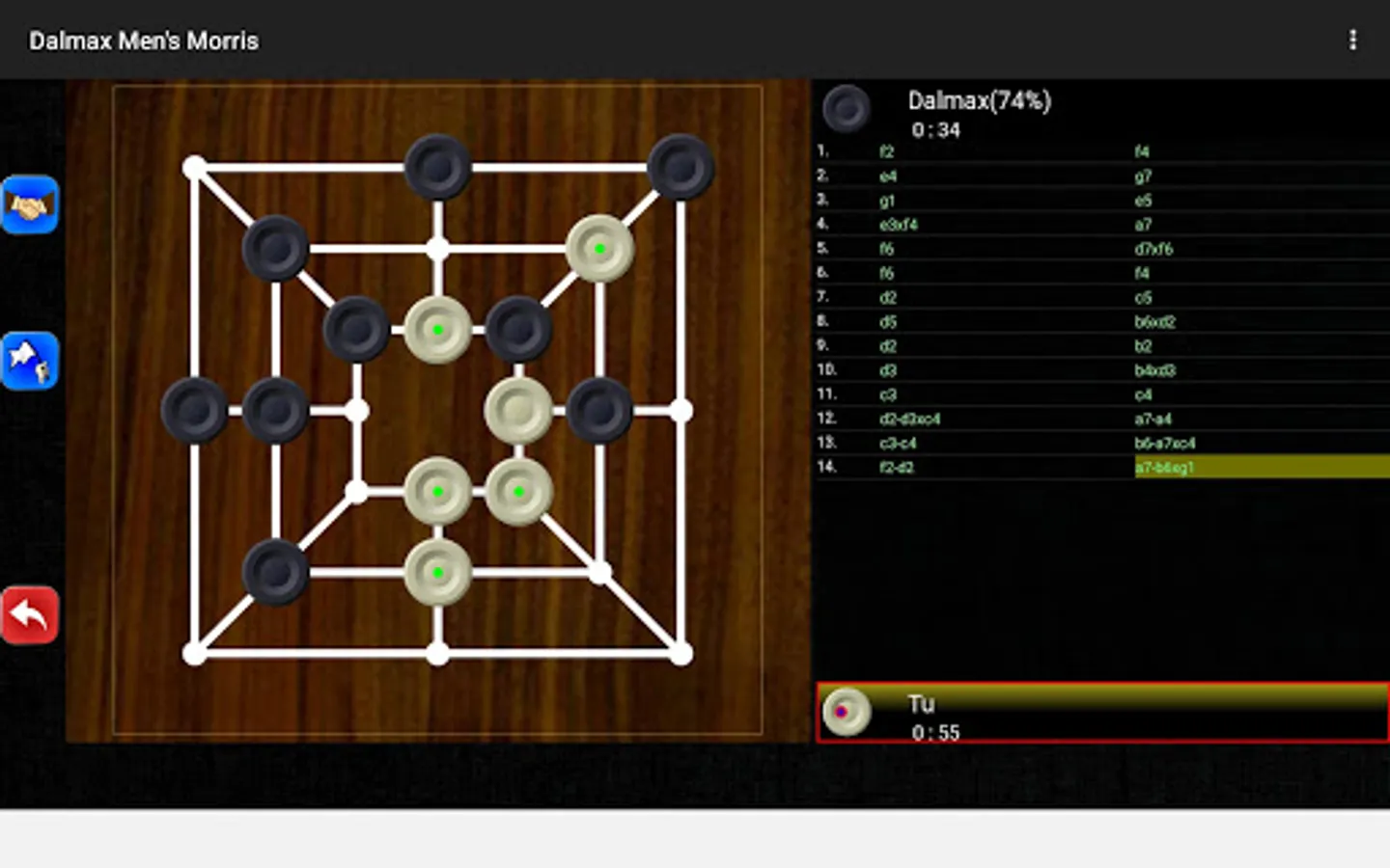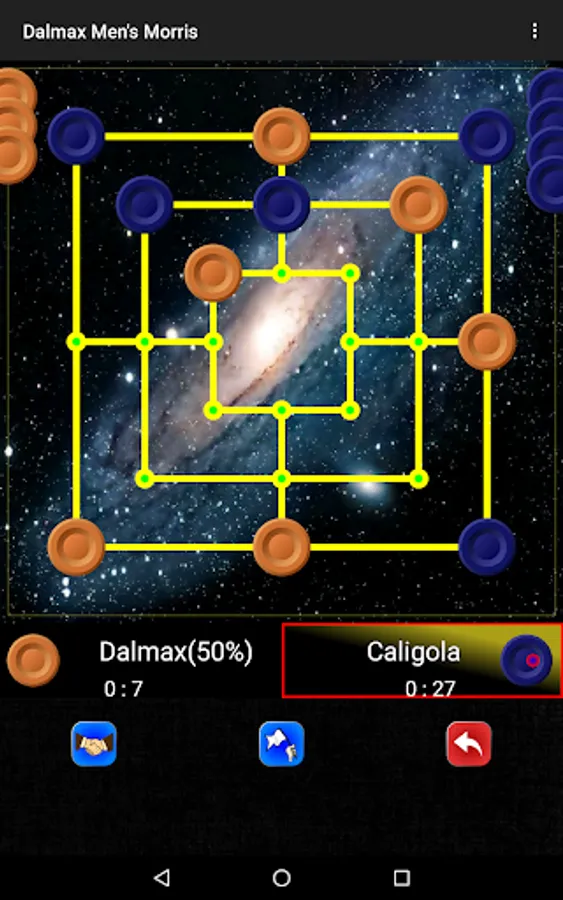 The classic Nine Men's Morris game, with some variants, both in number of tokens and in form of the board.