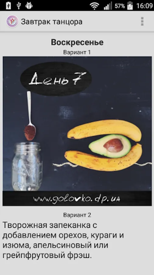 Every day of the week you get a healthy breakfast option 2: as an image and text.