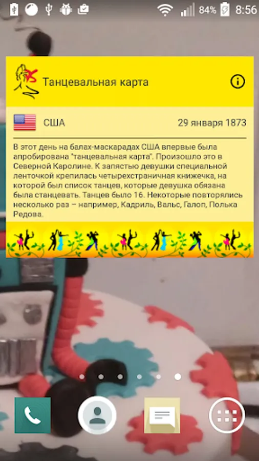 Widget shows the significant and interesting events from the world of dance, which took place on this day. The event list is constantly updated and synchronized automatically. Did you learn about the historical facts, which had a significant impact on the world of dance: people, movies, tournaments, flash mobs etc.
