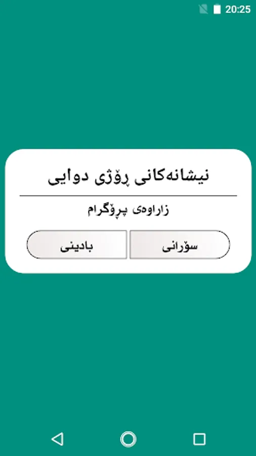 6/هەرکاتێک بەرنامەکەت دابەزاند پێت دەڵێت کامە زاراوە هەڵدەبژێریت واتە سۆرانی یان بادینی